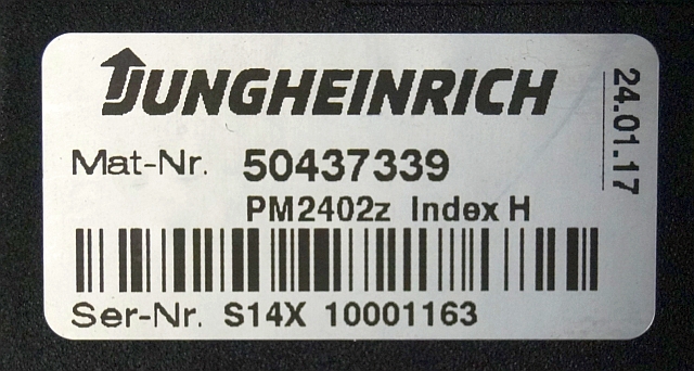 Jungheinrich 50437339 | Stuur regeling steering controller PM2402 Z Index H Sw 2,03 51067231 sn S14X 10001163 from ERE225 fixed platform year 2017