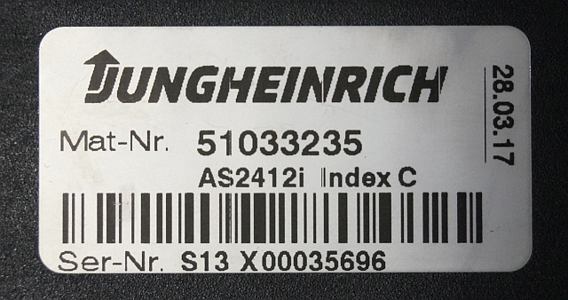 Jungheinrich 51033235 | Rij regeling Drive controller AS2412i index C Sw. 1,04 51140780 from ESE320 year 2017 sn. S13X00035696