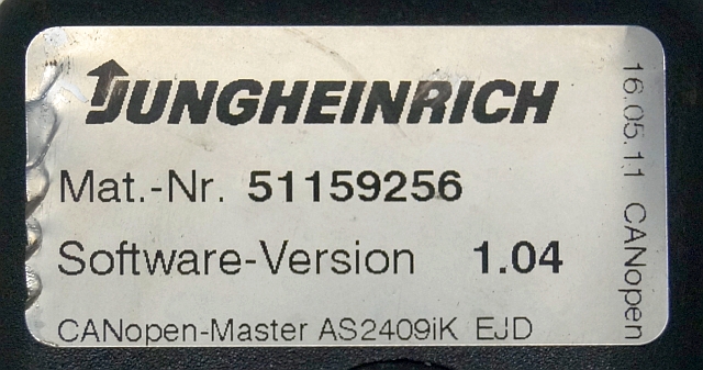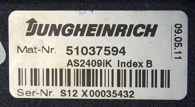Jungheinrich 51037594 | Rij/hef regeling Drive/lift controller AS2409 i k index B Sw. 1,04 51159256 sn. S12X00035432 from EJD220 year 2011