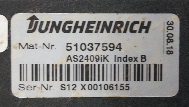 Jungheinrich 51037594 | Rij/hef regeling Drive/lift controller AS2409 i k index B sw. 1,09 51159256 sn. S12X00106155 from EJD220 year 2018