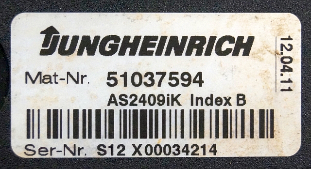 Jungheinrich 51037594 | Rij/hef regeling Drive/lift controller AS2409 i k index B Sw. 1,24 51075490 from EJE220 year 2013 sn. S12X 00034214