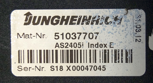 Jungheinrich 51037707 | Rij regeling driving controller AS2405i index E Sw. 1,26 51062370 sn. S18X00047045 from EJE C20 year 2012