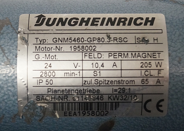 Jungheinrich 51145846 | Steeringmotor 24V type GNM5460 GP80,3 RSC Steering sensor 52037950 year 2010 motor nr. 1958002