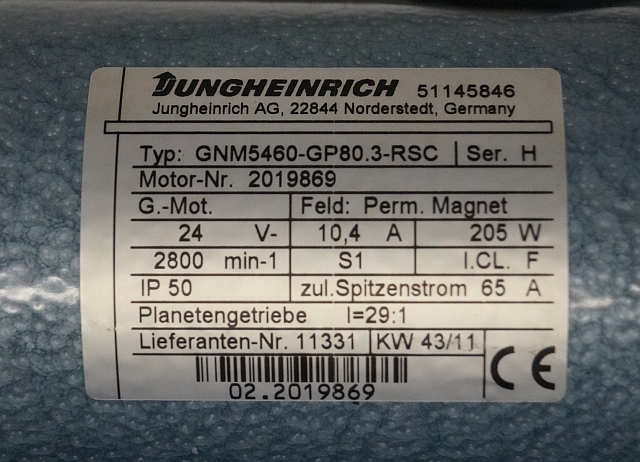 Jungheinrich 51145846 | Steeringmotor 24V type GNM5460 GP80,3 RSC Steering sensor 52037950 year 2011 motor nr. 2019869