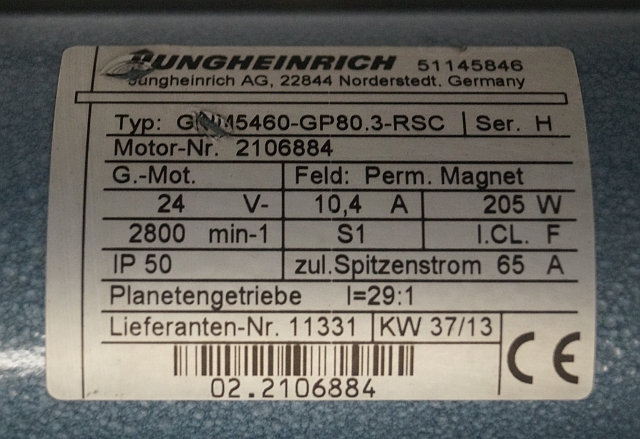 Jungheinrich 51145846 | Steeringmotor 24V type GNM5460 GP80,3 RSC Steering sensor 52037950 year 2013 motor nr. 2106884