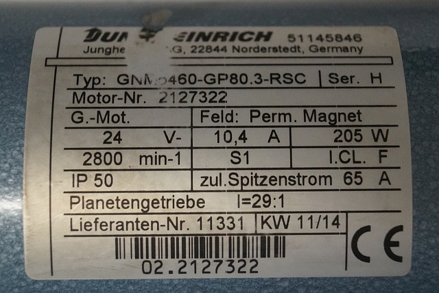 Jungheinrich 51145846 | Steeringmotor 24V type GNM5460 GP80,3 RSC Steering sensor 52037950 year 2014 motor nr. 2127322