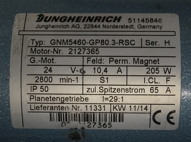 Jungheinrich 51145846 | Steeringmotor 24V type GNM5460 GP80,3 RSC Steering sensor 52037950 year 2014 motor nr. 2127365