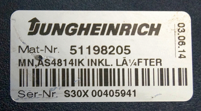 Jungheinrich 51159321 | Rij/hef regeling drive/lifting controller AS4814Ik Index A 51198205 inkl. LA1/4FTER sn. S1EX00014004 from ETV216 year 2014
