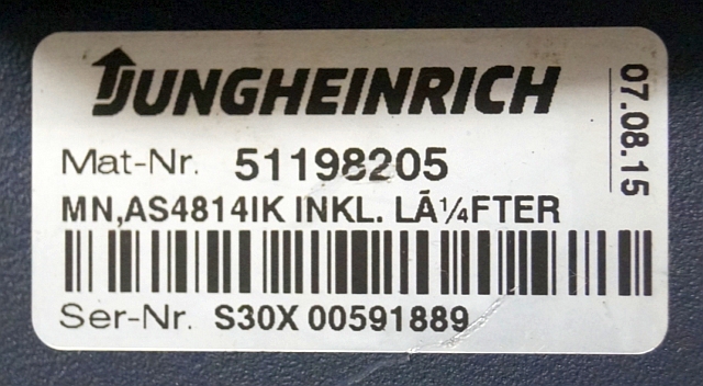 Jungheinrich 51159321 | Rij/hef regeling drive/lifting controller AS4814Ik Index B 51198205 inkl. LA1/4FTER from ETV216 year 2015 sn. S1EX00022840