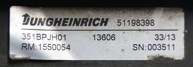 Jungheinrich 51198398 | Brake pedal 351BPJH01 13606 RM: 1550054 sn. 003511