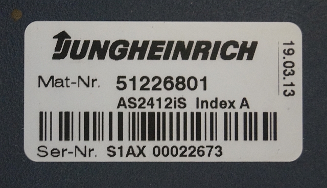 Jungheinrich 51226801 | Rij/hef/stuur regeling drive/lift/steering controller AS2412 i S index A Sw. 1,02 sn. S1AX00022673 for ERE225 year 2013