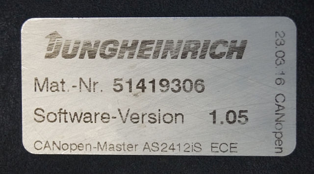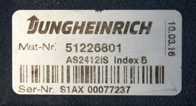 Jungheinrich 51226801 | Rij/hef/stuur regeling drive/lift/steering controller AS2412 i S index B Sw. 1,05 51419306 sn. S1AX00077237 from ECE225 year 2016