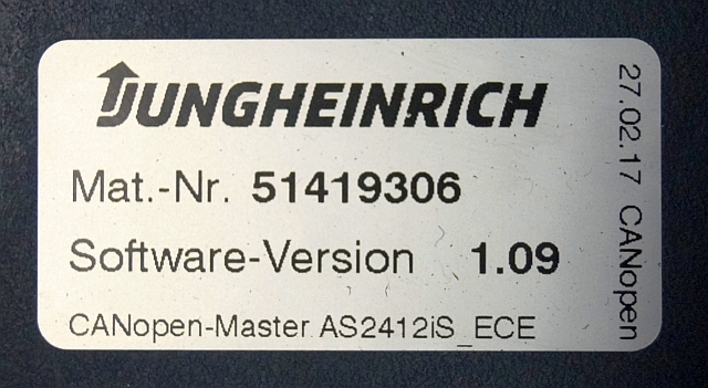 Jungheinrich 51226801 | Rij/hef/stuur regeling drive/lift/steering controller AS2412 i S index C Sw 1,09 51419306 sn. S1AX00098014 from ECE225 year 2017