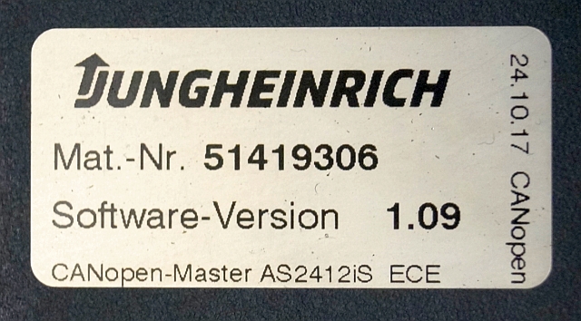 Jungheinrich 51226801 | Rij/hef/stuur regeling drive/lift/steering controller AS2412 i S index C Sw 1,09 51419306 sn. S1AX10007886 from ECE225 year 2017