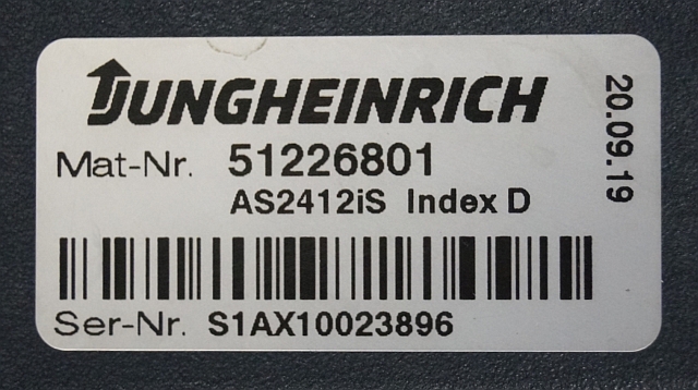Jungheinrich 51226801 | Rij/hef/stuur regeling drive/lift/steering controller AS2412 i S index D Sw 1,07 51263516 sn. S1AX10023896 from ERE225 fixed platform year 2016