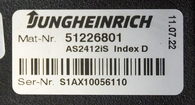 Jungheinrich 51226801 | Rij/hef/stuur regeling drive/lift/steering controller AS2412 i S index D Sw 1,07 51263516 sn. S1AX10056110 from ERE225 fixed platform year 2015