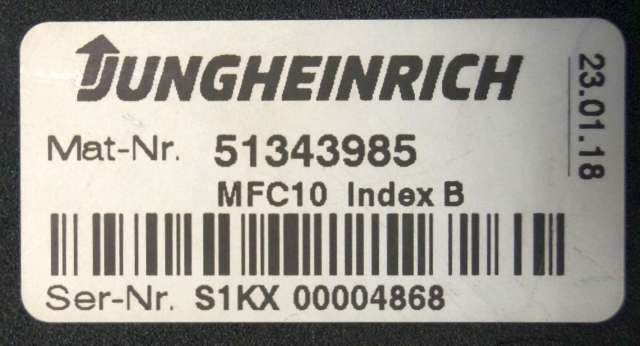Jungheinrich 51343985 | MFC10 Index B sw 1,05 51415883 sn. S1KX00004868 from EKS110 year 2018
