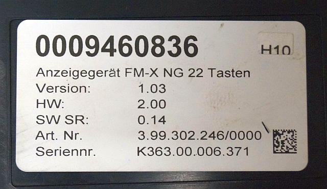 Display V1.03 HW 2.00 Sw. 0.14 399302246/0000 sn K363.00.006.351 from Still FMX14N year 2018