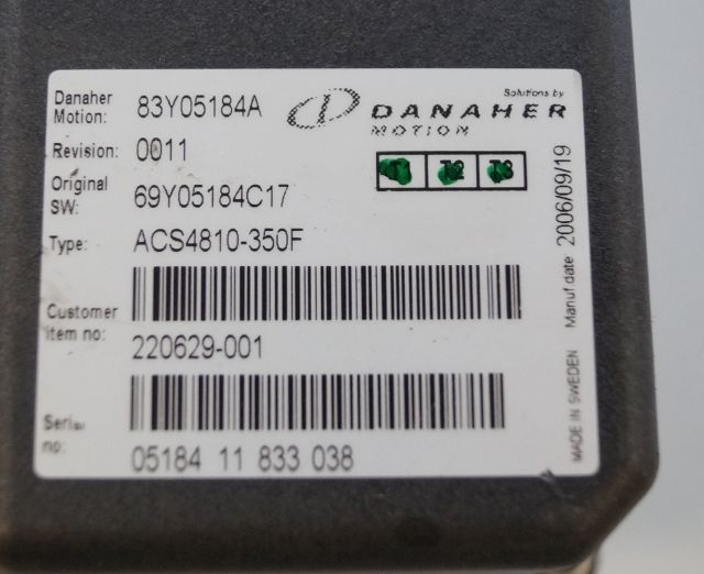 Toyota/BT 220629-001 | Danaher motion AC Superdrive motor controller 83Y05184A ACS4810-350F Rev 0011 sn. 0518411833038