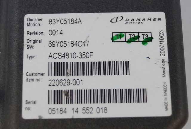 Toyota/BT 220629-001 | Danaher motion AC Superdrive motor controller 83Y05184A ACS4810-350F Rev 0014 sn. 0518414552018